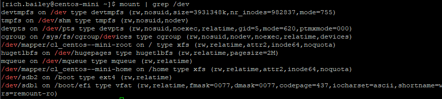 Step 1 – Identify the disk you want to investigate. Type “mount | grep /dev” to list your attached disk. In this example, I want to check /dev/sda1