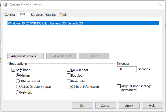 Step 5 – Does it work in safe mode? All version of Windows have safe mode available. In the newer releases, you can access safe mode via command prompt and typing “MSConfig.” Click on the boot tab and tick the safe boot check box. Now click on the Advanced Settings Tab and click debug for additional logging. Next, click OK, and the computer will prompt you to reboot. Once in safe mode, see if you can access the hard drive giving off the I/O device error.