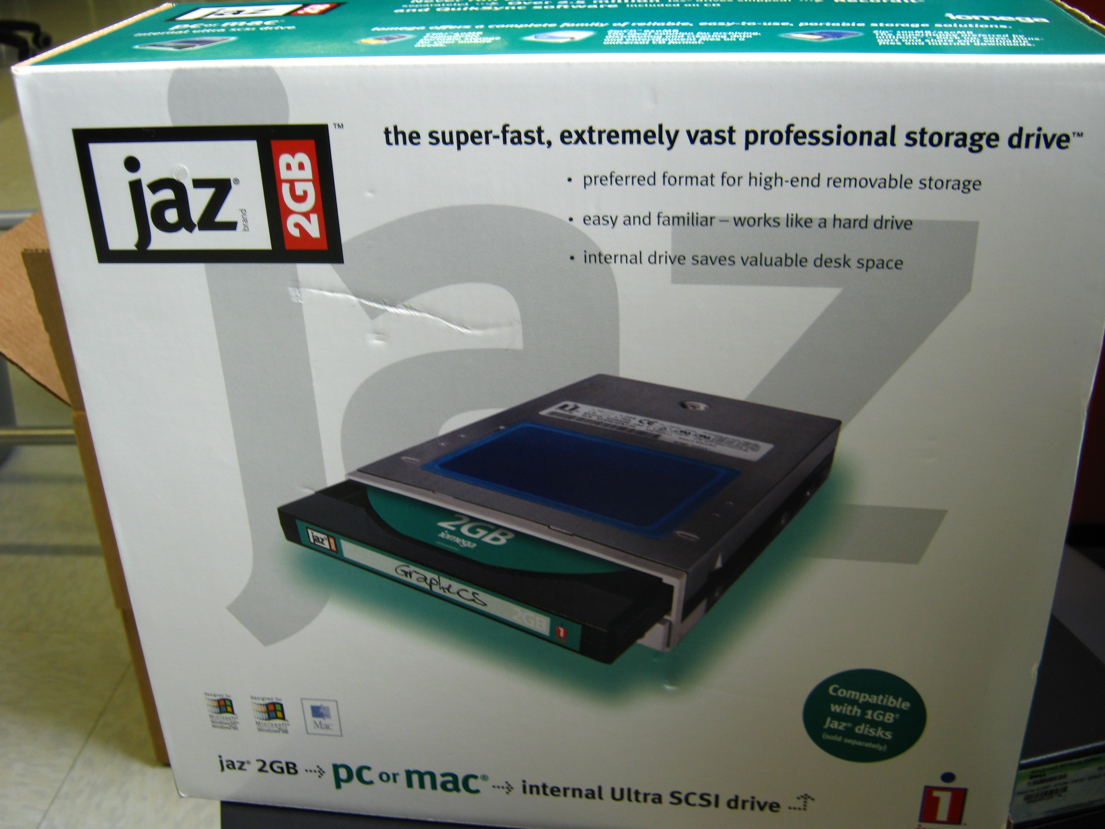 We were instantly fond of/annoyed with the fickle Iomega Jaz discs, which started to be called “Yahz” drives, or “Yahts,” if you really wanted to go full German on them.