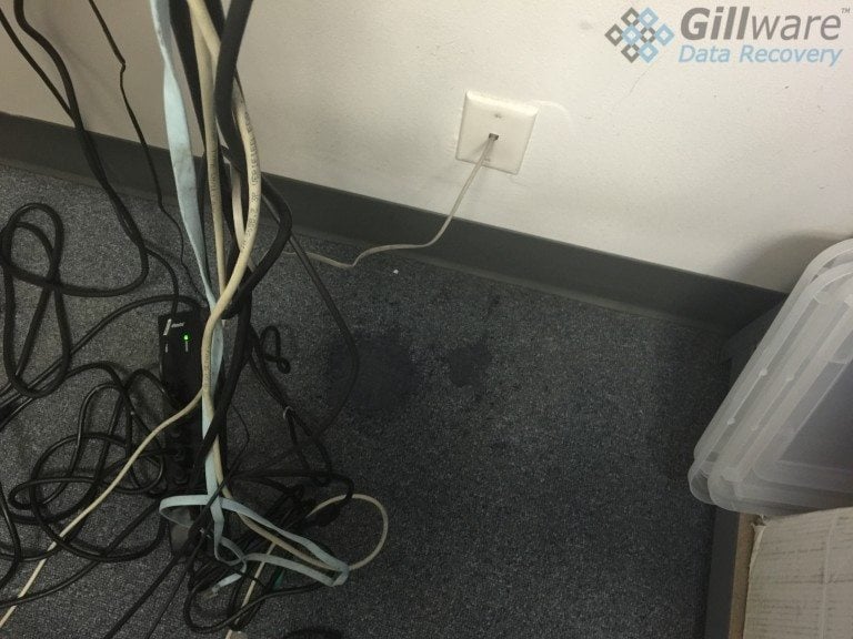 At first, the computer repair technician who brought the drives to us on the client’s behalf believed that someone had sprayed lubricant into the server machine. But then the substance began eating away at the server box, the table, and the carpet below it.